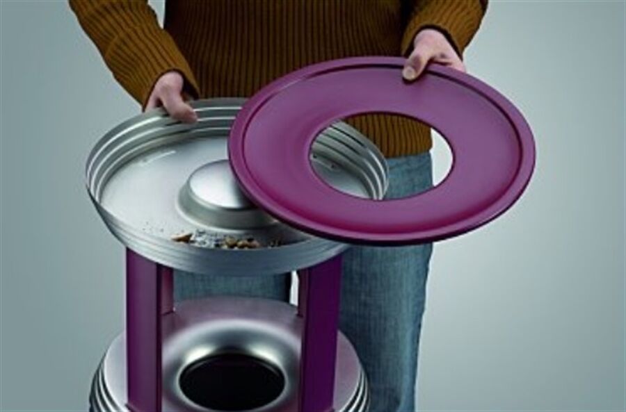 + Ascherschale und Papierkorbdeckel aus Edelstahl 1.4301, glasperlengestrahlt und elektropoliert
