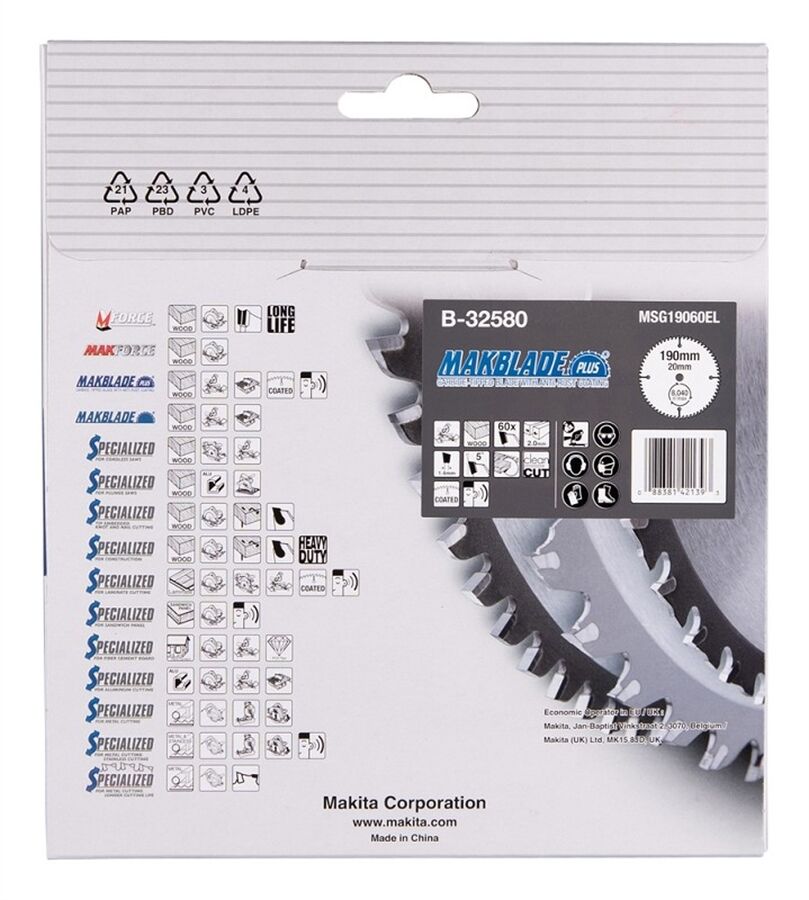 Makita MAKBLADE + Sägeblatt 190x20x60Z B-32580 0088381421393