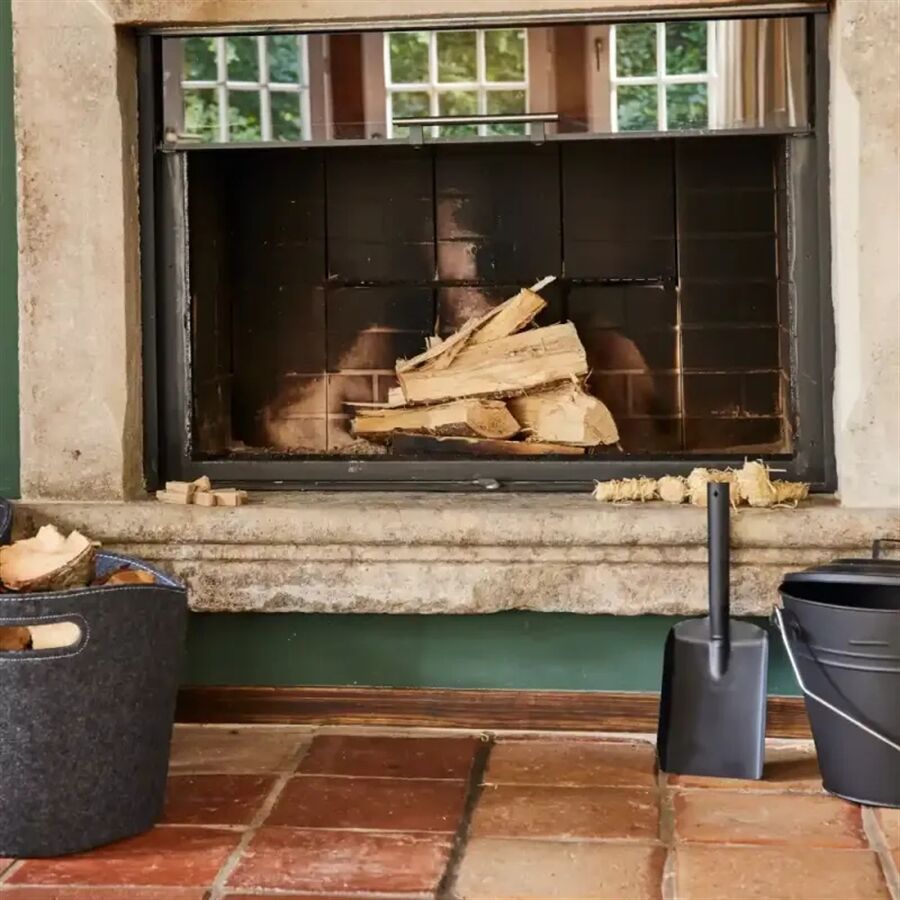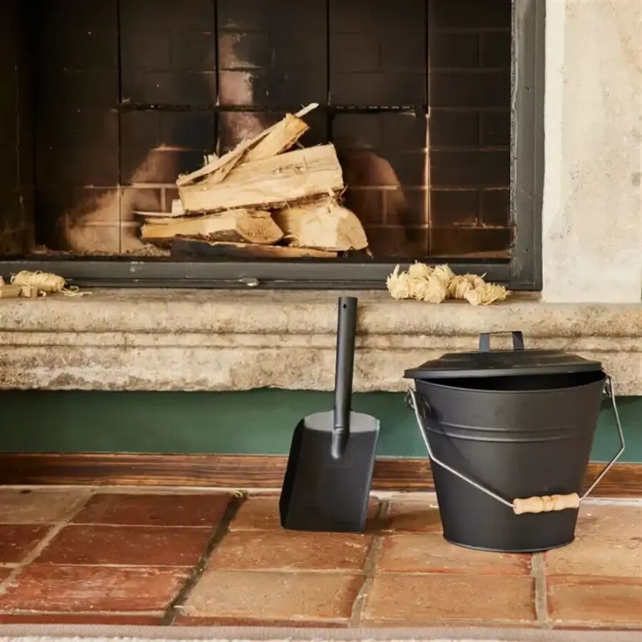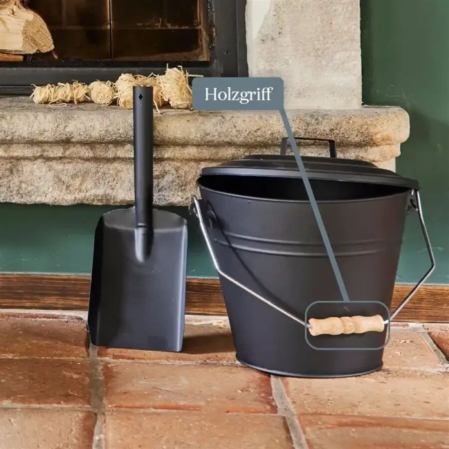 Durch sein rundes Design bietet der Ascheeimer eine komfortable Größe, um deinen Kamin problemlos von der kompletten Asche zu befreien, die Metallschaufel erleichtert das Aufsammeln der Asche.