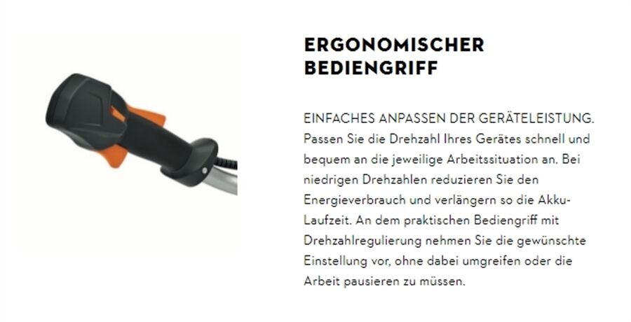 + Leistungsstarke Akku-Motorsense für Arbeiten im privaten Bereich