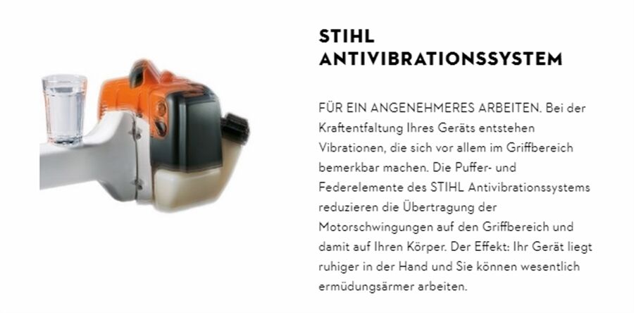 Um mit dem HT 135 noch angenehmer arbeiten zu können, sorgt der ergonomische, gepolsterte Traggurt für eine bessere Gewichtsverteilung. Muskeln und Gelenke werden zusätzlich durch das STIHL Antivibrationssystem entlastet.