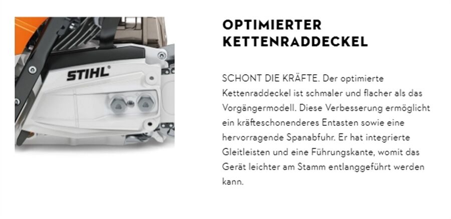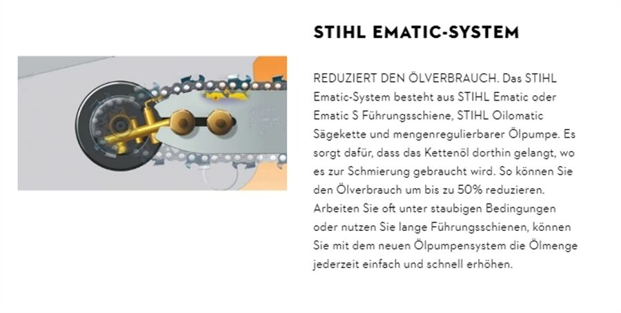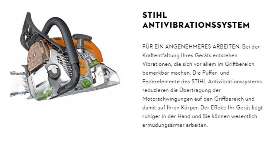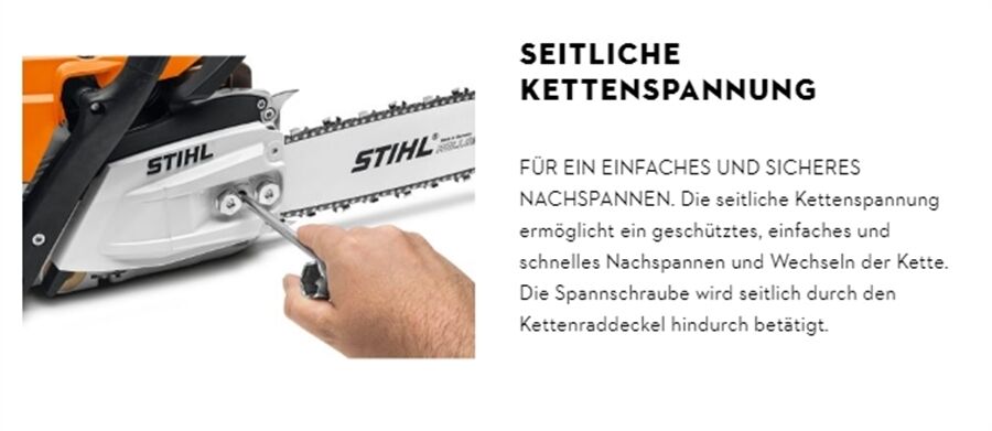 Die elektronisch gesteuerte Einspritzung erfolgt in den bewährten STIHL 2-MIX-Motor, der eine hohe Leistung bei geringem Verbrauch bietet. Zur Schonung der Muskeln und Gelenke verfügt die Benzin-Motorsäge über den STIHL ElastoStart. Der HD2-Luftfilter, die verliersicheren Muttern am Kettenraddeckel, die mengenregulierbare Ölpumpe, der werkzeuglose Tankverschluss und die seitliche Kettenspannung runden die Top-Ausstattung ab.