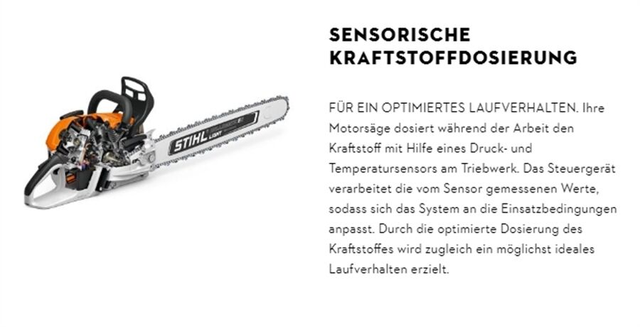 + Weltweit erste Motorsäge mit elektronischer Kraftstoffeinspritzung