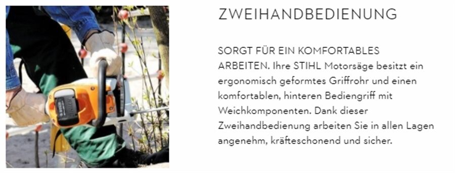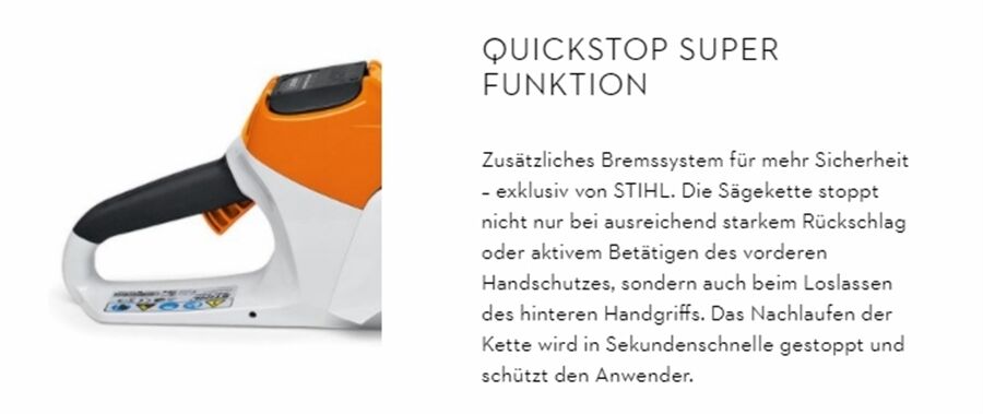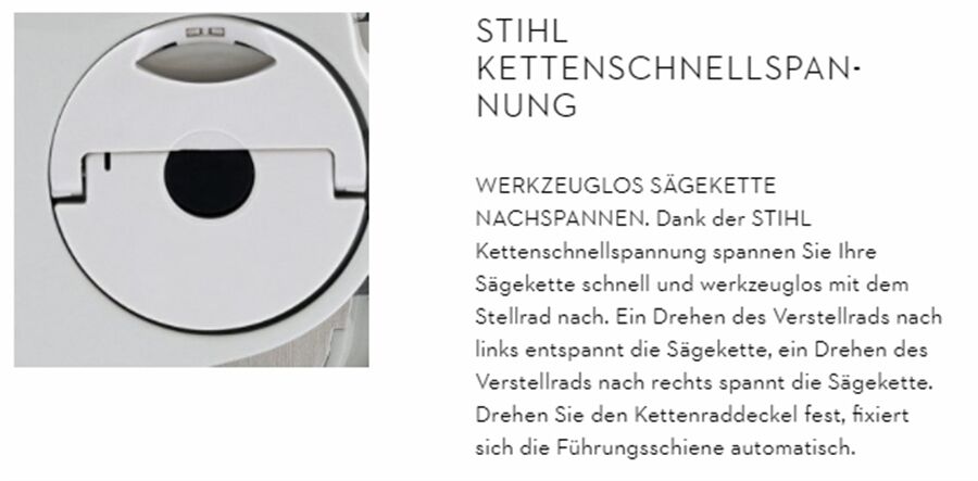 Die Kettenbremse QuickStop Super von STIHL sorgt für ein sicheres Arbeiten, da die Sägekette bei einem Rückschlag in Sekundenschnelle zum Stillstand kommt. Das STIHL Ematic-System transportiert jeden Tropfen Öl nur dorthin, wo er auch wirklich gebraucht wird. Auch der Komfort kommt nicht zu kurz: Dank der STIHL Kettenschnellspannung können Sie bei dieser Kettensäge die Sägekette besonders einfach und sicher sowie werkzeuglos nachspannen.