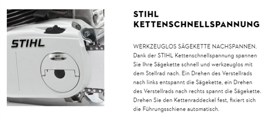 + Einfaches Nachspannen der Kette dank STIHL Kettenschnellspannsystem