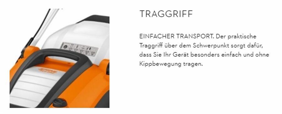 Durch die Ausstattung mit einem Elektromotor erledigt der Elektro-Rasenlüfter STIHL RLE 240 seine Arbeit geräuscharm, emissionsfrei und umweltfreundlich. Eine integrierte Kabelzugentlastung fixiert das Verlängerungskabel sicher an der Schalter-Stecker-Kombination Ihres Elektro-Vertikutierers. Die Leichtlaufräder des Elektro-Vertikutierers STIHL RLE 240 verfügen über ein Traktions- und Richtungsstabilitätsprofil und unterstützen damit neben der leichten Manövrierbarkeit eine gute Bodenhaftung. Über den am Polymergehäuse angebrachten Tragegriff lässt sich der Rasenvertikutierer RLE 240 von STIHL problemlos anheben, kippen, verladen und besonders platzsparend verstauen. Stellen Sie sicher, bevor Sie das Gerät anheben oder verstauen, dass der Motor abgestellt und der Sicherungsschlüssel abgezogen ist. Gleichzeitig schützt der Griff das Gehäuse des elektrischen Rasenlüfters RLE 240 beim Kontakt mit Hindernissen auf der Rasenfläche. Der praktische Grasfangkorb kann bis zu 50 l Pflanzenreste aufnehmen.