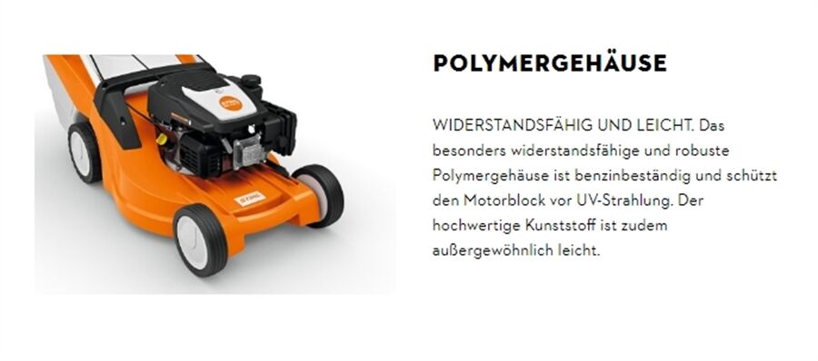 WIDERSTANDSFÄHIG UND LEICHT. Das besonders widerstandsfähige und robuste Polymergehäuse ist benzinbeständig und schützt den Motorblock vor UV-Strahlung. Der hochwertige Kunststoff ist zudem außergewöhnlich leicht.