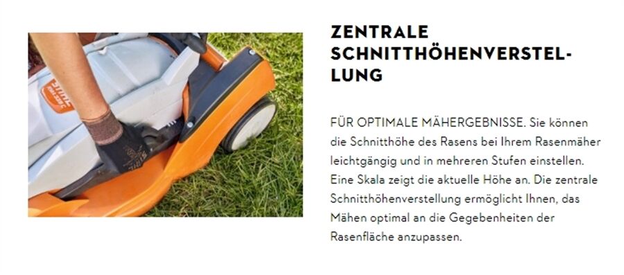 FÜR OPTIMALE MÄHERGEBNISSE. Sie können die Schnitthöhe des Rasens bei Ihrem Rasenmäher leichtgängig und in mehreren Stufen einstellen. Eine Skala zeigt die aktuelle Höhe an. Die zentrale Schnitthöhenverstellung ermöglicht Ihnen, das Mähen optimal an die Gegebenheiten der Rasenfläche anzupassen.