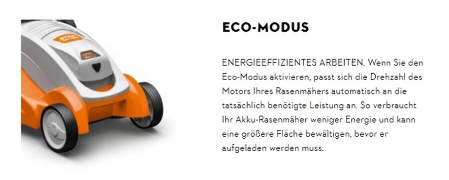 Sie können die Arbeitsgeschwindigkeit über den Bedienhebel am Holm individuell zwischen 0 km/h und 4,6 km/h einstellen. Der Eco-Modus passt die Motorleistung automatisch an das benötigte Leistungsniveau an, während Sie arbeiten. Dank der sequenziellen Entladung sorgt der RMA 448 PV außerdem dafür, dass automatisch auf den zweiten mitgeführten Akku aus dem STIHL AP-System umgeschaltet wird, sobald der erste leer ist. Das manuelle Wechseln der Akkus entfällt also und Sie können auch größere Rasenflächen sehr effizient mähen. Gleichzeitig unterstützen die strömungsoptimierten Messer einen sparsamen Energieverbrauch.