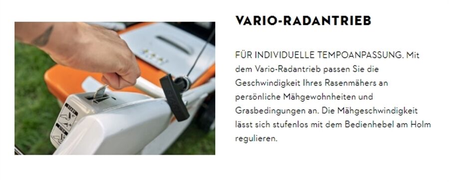 Der Akku-Rasenmäher STIHL RMA 448 PV mit Vario-Radantrieb und 46 cm Schnittbreite erleichtert Hobbygärtnern und Hobbygärtnerinnen das Mähen von mittelgroßen Rasenflächen und Hanglagen. Besitzen Sie noch keine Akkus aus dem STIHL AP-System, empfiehlt es sich, den STIHL RMA 448 PV direkt im Set zu kaufen. Das Set beinhaltet einen Akku STIHL AP 30 und das Schnellladegerät STIHL AL 301.