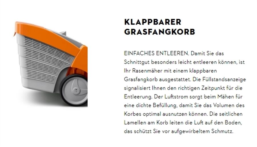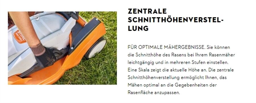 Um ihren Rasen in Form zu bringen, können Sie die Wunschlänge Ihres Rasens über die zentrale Schnitthöhenverstellung beim STIHL RMA 448 PV in 7 Stufen von 20 mm bis 100 mm einstellen. Während des Mähens fängt der klappbare Grasfangkorb mit 52 l Volumen zuverlässig das Schnittgut auf und lässt sich im Anschluss leicht entleeren. Dank des höhenverstellbaren Komfortlenkers genießen Sie auch bei längeren Mäheinsätzen einen hohen Arbeitskomfort. Um den Rasenmäher kompakt zu verstauen, lässt sich der Lenker einfach einklappen.