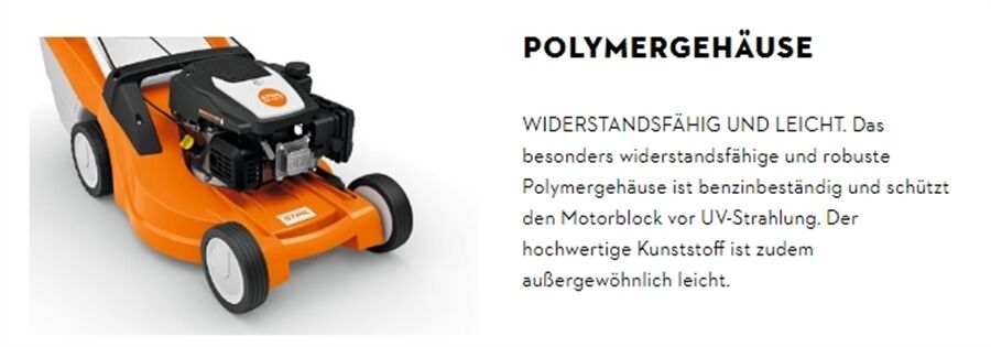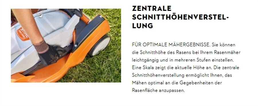 Der Akku-Rasenmäher STIHL RMA 453 PV mit Vario-Radantrieb und 51 cm Schnittbreite erleichtert Hobbygärtnern und Hobbygärtnerinnen das Mähen von mittelgroßen Rasenflächen und Hanglagen. Dabei können Sie die Arbeitsgeschwindigkeit über den Bedienhebel am Holm individuell zwischen 0 km/h und 4,6 km/h einstellen. Dank seiner sequenziellen Entladung sorgt der RMA 453 PV außerdem dafür, dass automatisch auf den zweiten mitgeführten Akku aus dem STIHL AP-System umgeschaltet wird, sobald der erste leer ist. Das manuelle Wechseln der Akkus entfällt somit und Sie können auch sehr effizient größere Rasenflächen mähen. Besitzen Sie noch keine Akkus aus dem STIHL AP-System, empfiehlt es sich, den STIHL RMA 453 PV direkt im Set zu kaufen. Das Set beinhaltet einen Akku STIHL AP30 und einen Akku STIHL AP 300 S und das Schnellladegerät STIHL AL 301.Dank serienmäßiger Ausstattung mit Multi-Messer, integrierter Mulchfunktion und Seitenauswurf eignet sich dieser Rasenmäher sowohl zum Mähen als auch zum Mulchen. Das Schnittgut können Sie entweder direkt fangen oder über den Seitenauswurf auf dem Rasen verteilen. Der klappbare und höhenverstellbare Komfortlenker sorgt für eine angenehme und ergonomische Führung des Rasenmähers. Mit der zentralen Schnitthöhenverstellung stellen Sie die Wunschlänge Ihres Rasens in 7 Stufen von 20 mm bis 100 mm ein. Der klappbare 55 l Grasfangkorb nimmt jede Menge Schnittgut auf und ist leicht zu entleeren.In unserer Übersicht zu den STIHL Akku-Lauf- und Ladezeiten können Sie sehen, wieviel Rasenfläche Sie mit einer Akkuladung Ihres STIHL Akku-Rasenmähers RMA 453 PV im Set mit Akku AP30 und AP 300 S und Schnellladegerät AL 301 bearbeiten können und wie lange der eingesetzte Akku zum Laden benötigt.Hinweis: Der Akku AP30 und der Akki AP 300 S sind nach IPX4 Schutzart zertifiziert.