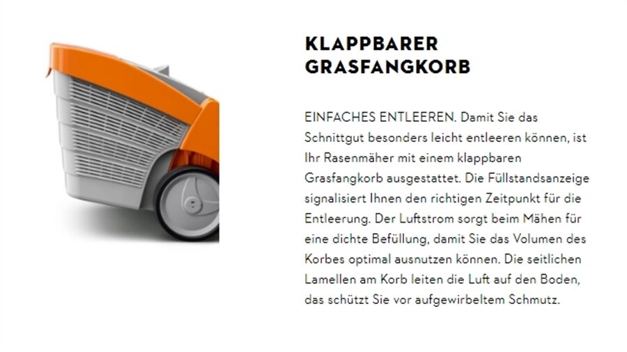 + Komfortables Arbeiten dank 55 l Grasfangkorb mit Füllstandsanzeige