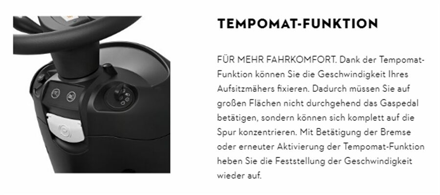RASENTRAKTOR RT 6112 ZL: TEMPOMAT FÜR GLEICHMÄSSIGES MÄHEN