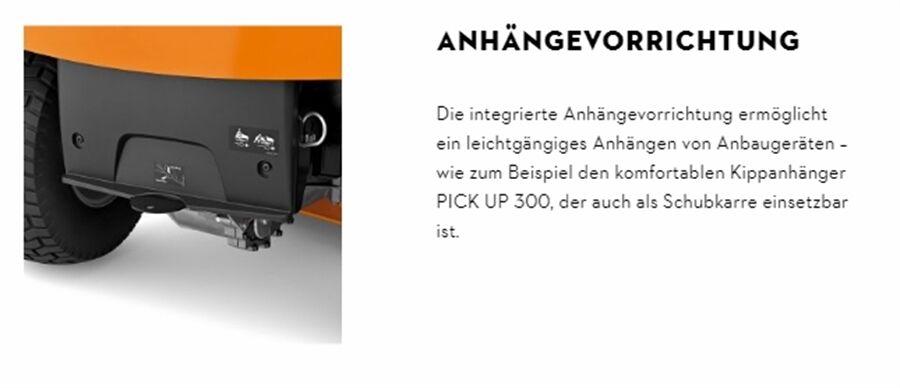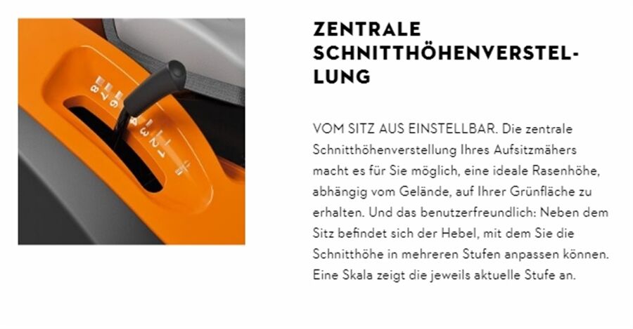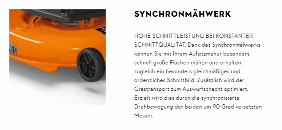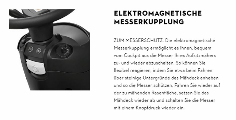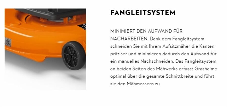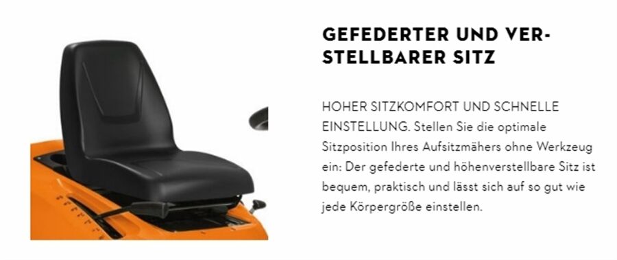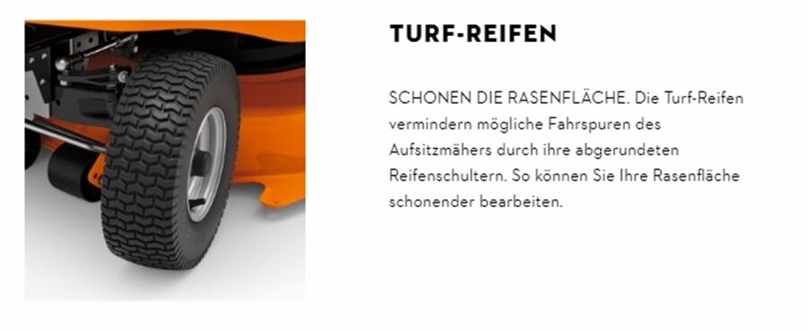 + Leistungsstarker Aufsitzmäher auch für schwieriges Gelände