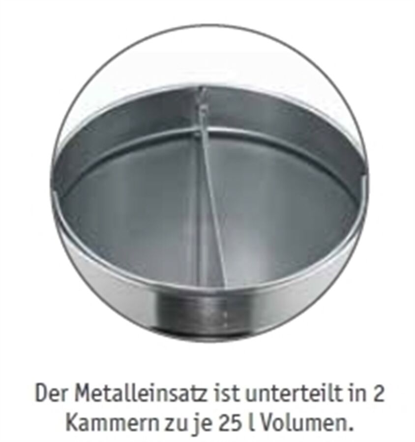 - er verfügt über zwei Edelstahlklappen, mit denen zwei separate Kammern befüllt werden können